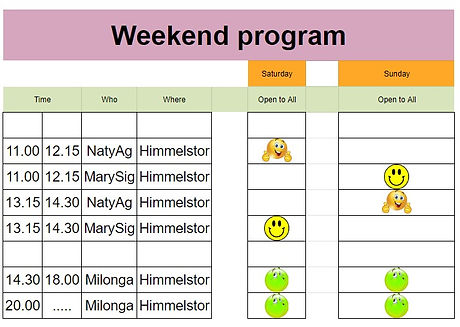 Each teacher will give 1 open drop-in class on Saturday and on Sunday. There will be afternoon and evening milongas.